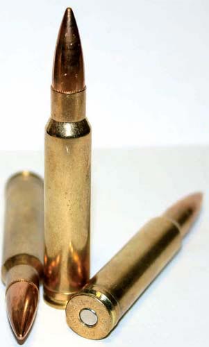 Заострим внимание на наиболее часто встречающихся и востребованных у нас в Отечестве. И начать я предлагаю с тех, в горлышко которых посажены пули самого распространенного «трехлинейного» калибра. Прежде всего обратимся, пожалуй, к несомненно популярному у нас магнум-патрону этого калибра .300 Winchester Magnum. Он появился на свет в 1963 г. и сразу же приобрел колоссальную популярность у охотников и спортивных стрелков на дальние дистанции. И, надо сказать, было за что. Патрон с 150-грановой пулей имеет очень настильную траекторию, да и сам по себе этот удачный калибр показывает стабильную и отменную кучность, а, следовательно, и точность. Снаряженный экспансивной пулей потяжелее, 300-й WinMag пригоден для охоты на крупных копытных и хищников. Во всяком случае, в наших краях ему открыты все охотничьи просторы, и вся наша большая тройка (кабан, лось и медведь) вполне ему по зубам. Сравнивая этот патрон с теоретическим стандартом, т. е. есть с .30-06 Springfield, можно заметить, что 180-грановая пуля .30-06-го имеет начальную энергию 4500 джоулей, в то время как та же самая пуля, но выпущенная из винтовки калибра .300 WinMag, – всего на 250 джоулей больше. Так ли это много? Конечно, практикой вроде бы давно доказано, что для той же самой «русской тройки» минимально достаточен повсеместно распространенный у нас калибр .308 Winchester или 7,62х51. (Для справки следует заметить, что та же 180-грановая пуля патрона .308 будет иметь начальную энергию, примерно равную 4100 джоулей). Этого теоретически вполне достаточно для того, чтобы поразить такого серьезного противника, как некрупный лось или медведь, на дистанции до 150 м, где энергия пули будет порядка 2400 джоулей.