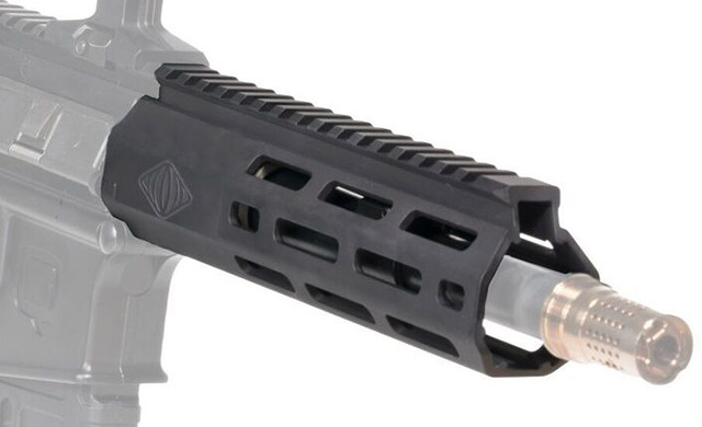 Цевье изготовлено на станке с ЧПУ из алюминия 6061-T6 и покрыто твердым анодированным покрытием MIL-STD Type III, оно отличается прочностью и эффективностью. Цевье оснащено фирменной системой крепления ствола и стяжной муфтой для надежного крепления и точного совмещения с другими элементами оружия, предотвращая провисание и смещение во время использования. Конструкция оснащена полноразмерными слотами M-LOK и антипрокручивающимися фиксаторами для установки аксессуаров, таких как лазеры, тепловизоры и оптика. Низкопрофильная конструкция обеспечивает прочность без увеличения объема всей конструкции оружия.